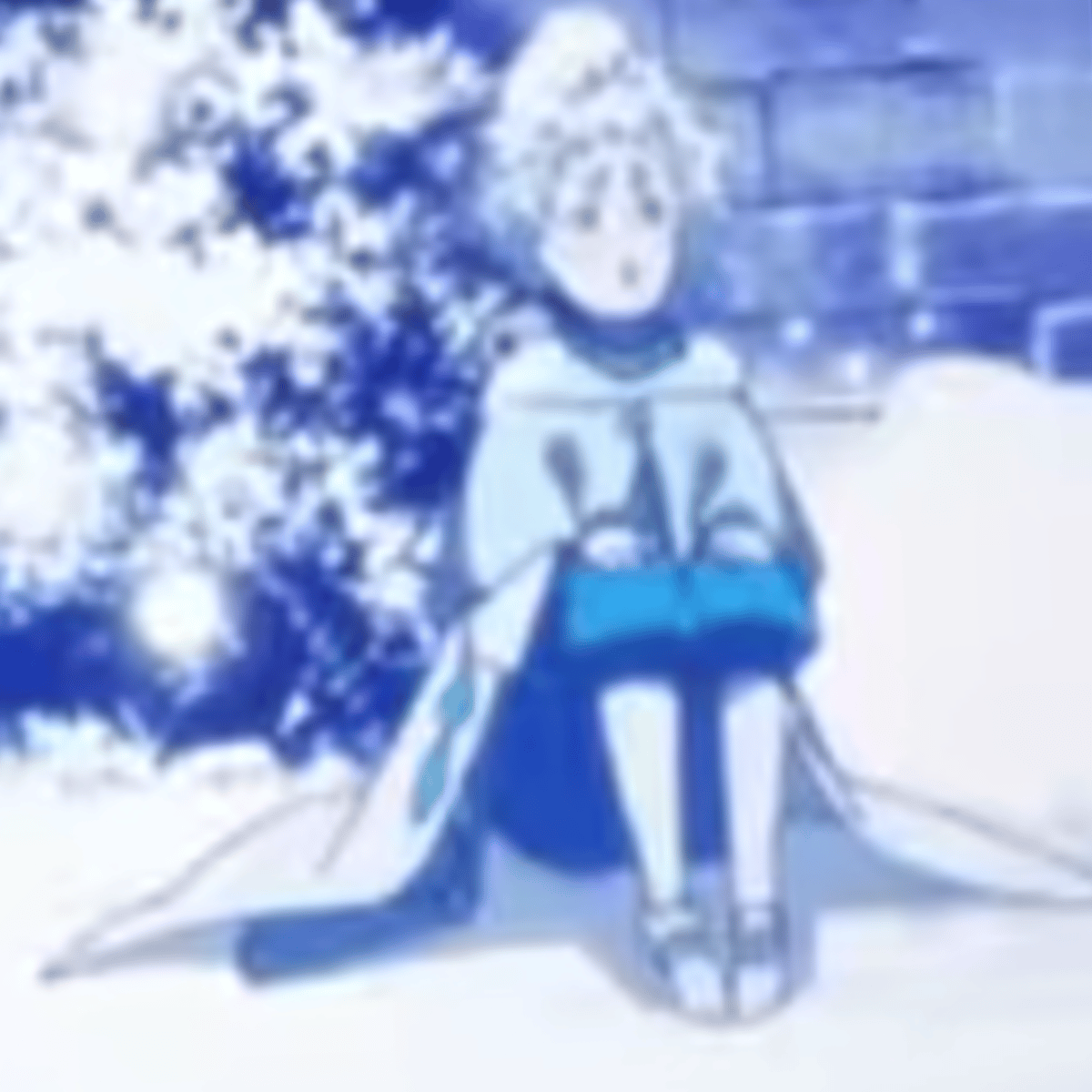 Rill is a young man with soft, aqua-colored hair in a messy mound atop his head. He wears a light-colored shirt under a dark blue vest that is held closed by a bronze-colored belt.