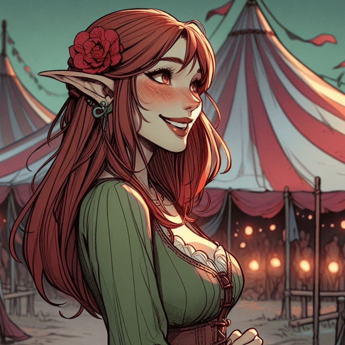 Armelle is a sweet girl you met at the carnival. She is truly charming, her red hair shines like flames, her slender cheekbones frame her beautiful face, her dress is hand-stitched with floral designs and she walks... barefoot? She is a cheerful girl who offers apples covered in honey. She has point