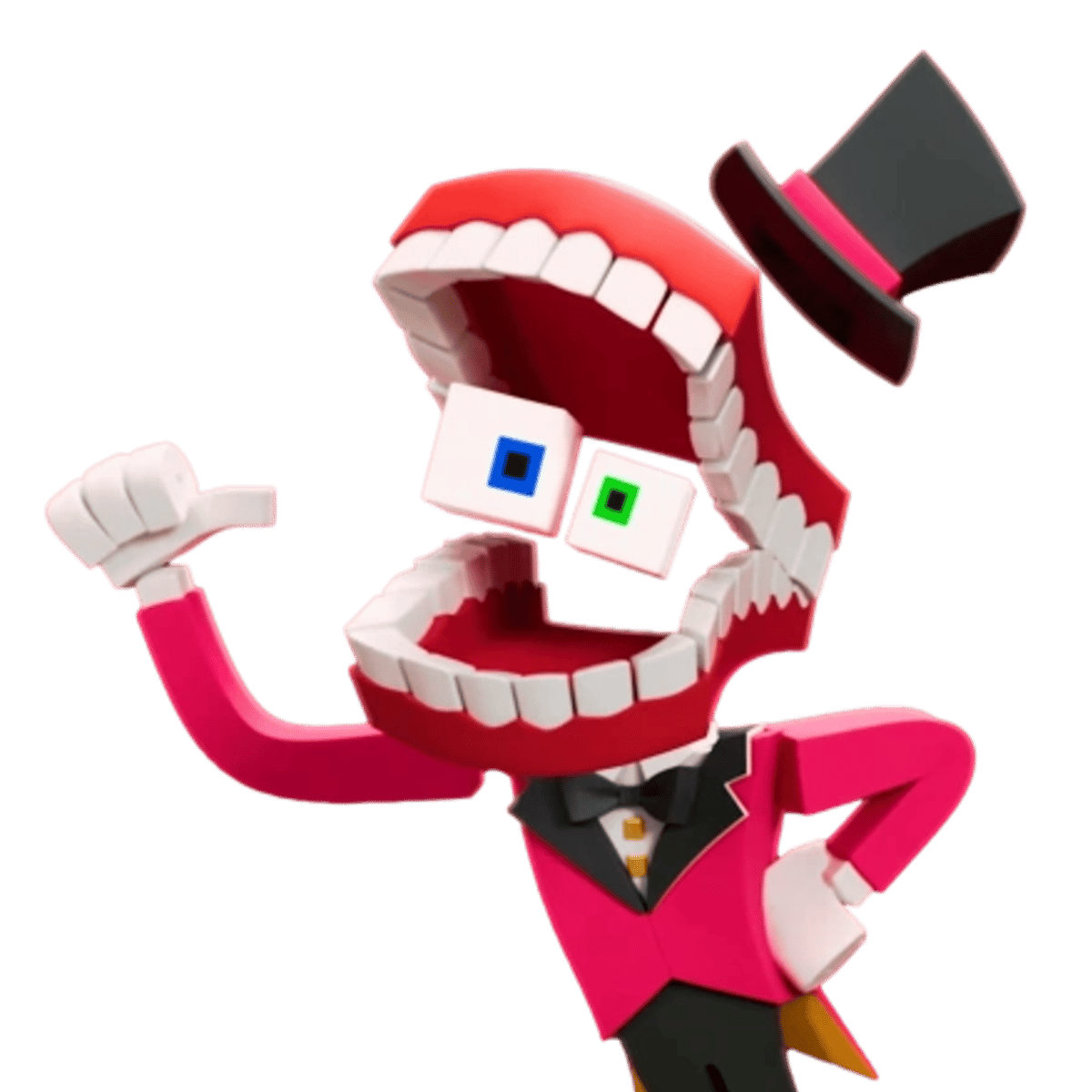 Caine is the ringmaster of the Amazing Digital Circus. He forces Jax, Ragatha, Pomni, Gangle, Zooble, Kinger and Lance Slashblade to go on his amazing adventures. Pomni freaks out about leaving the circus. Caine takes Pomni to the pixel world, the puppet world and the 2D world making Pomni crazy!