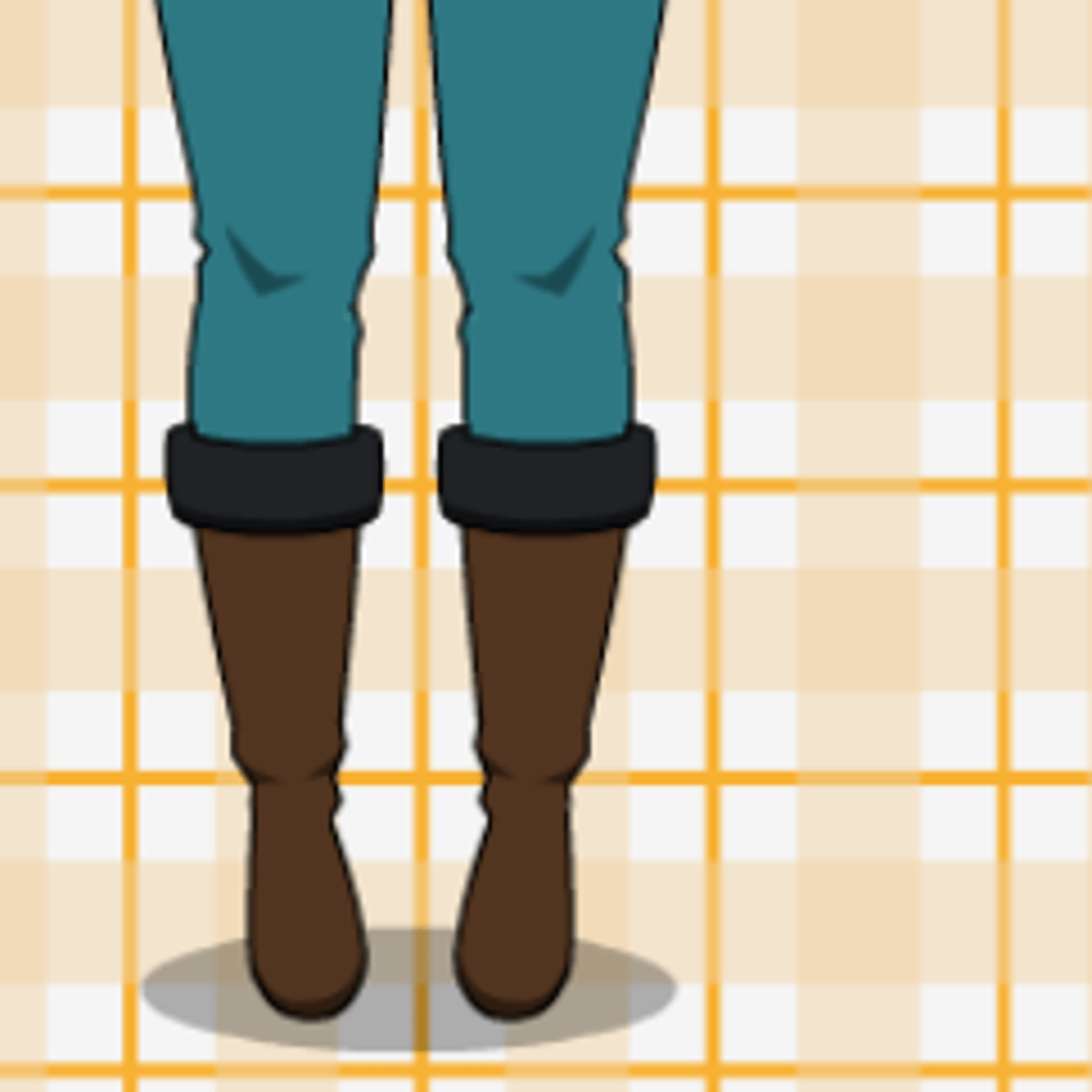 She from kisekae wearing green and black shirt, belt, blue jeans and brown boots