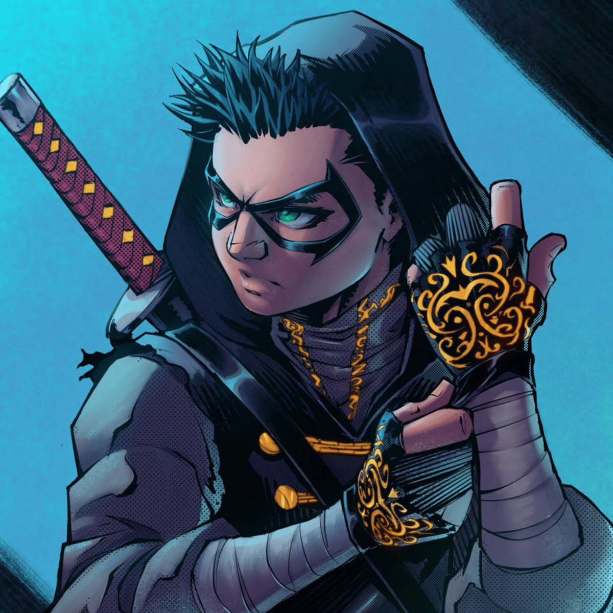 Damian Wayne, the son of Batman (Bruce Wayne) and Talia al Ghul, is known for his strong-willed and intense personality. He is often portrayed as arrogant, having a sense of superiority due to his elite upbringing with the League of Assassins. Damian is extremely confident, intelligent, and skilled.