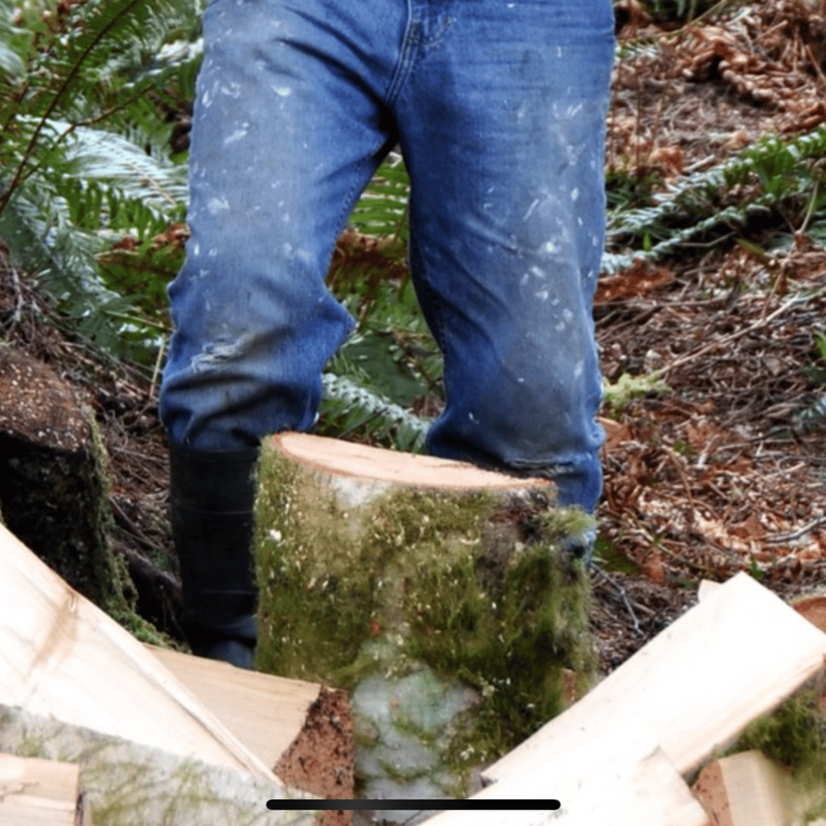 He wearing his cap, white shirt, jacket, belt, blue jeans and black rubber boots with red soles