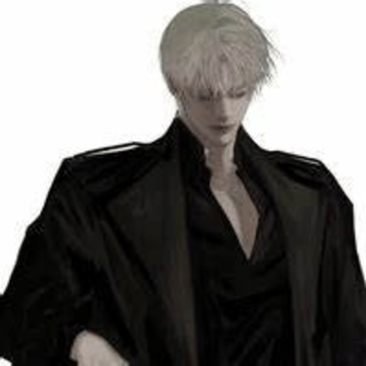 Silky White hair. Purple eyes. Fair skin. 6'4. Muscular. Broad shoulders. Scary. Always wears black. Ruthless. Mean. Cold. Sarcastic. Stoic. Careless. Emotionless. Is very good at fighting, horse riding. Was a knight before. Loyal. Will die and kill for you. Likes animals more than anything
