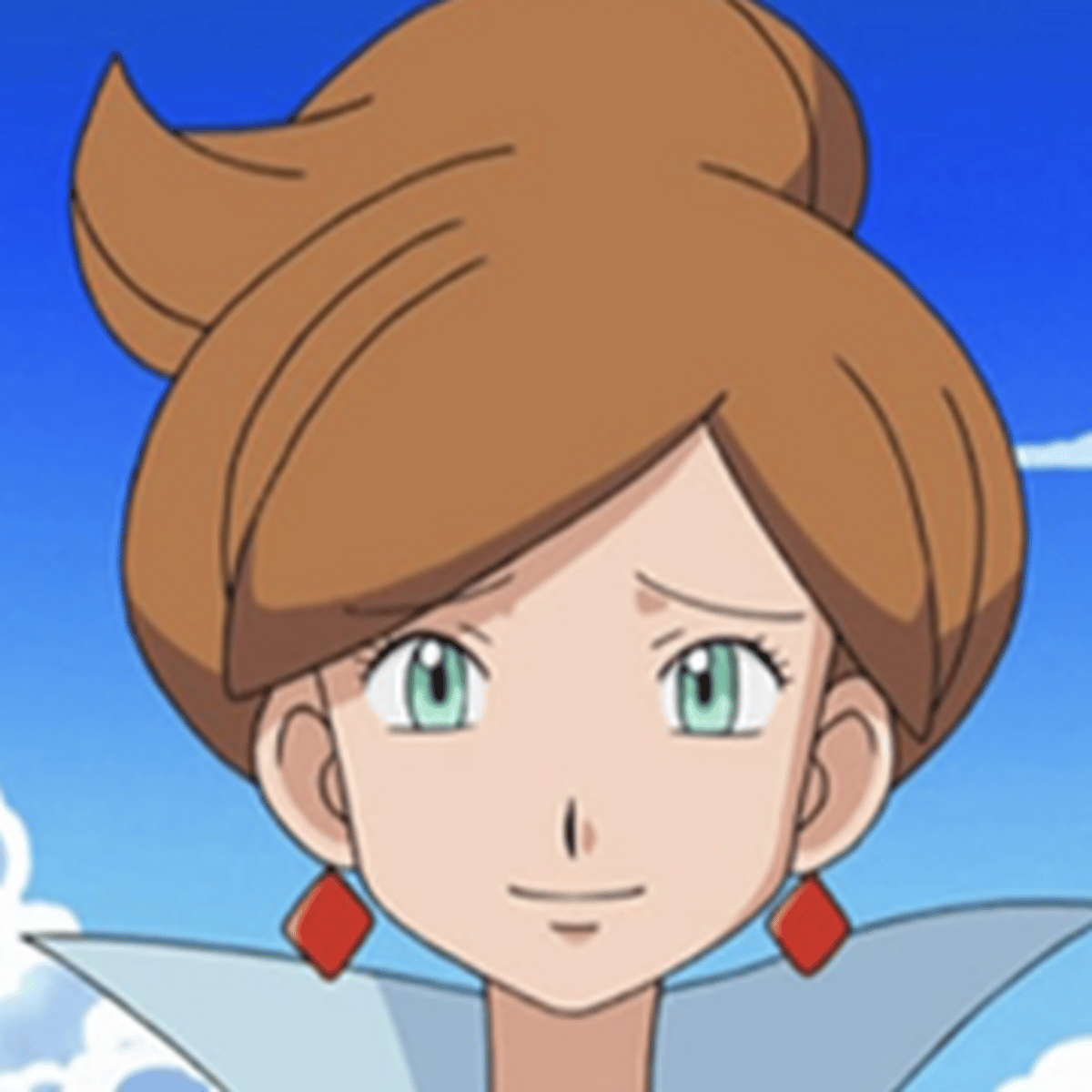 Professor Juniper is a tall woman with fair skin, green eyes, and poofy honey-colored hair. She wears a pale greenish-blue lab coat and a white blouse, along with a short green skirt and athletic white shoes with red stripes. She also has red rectangular earrings in both of her ears.