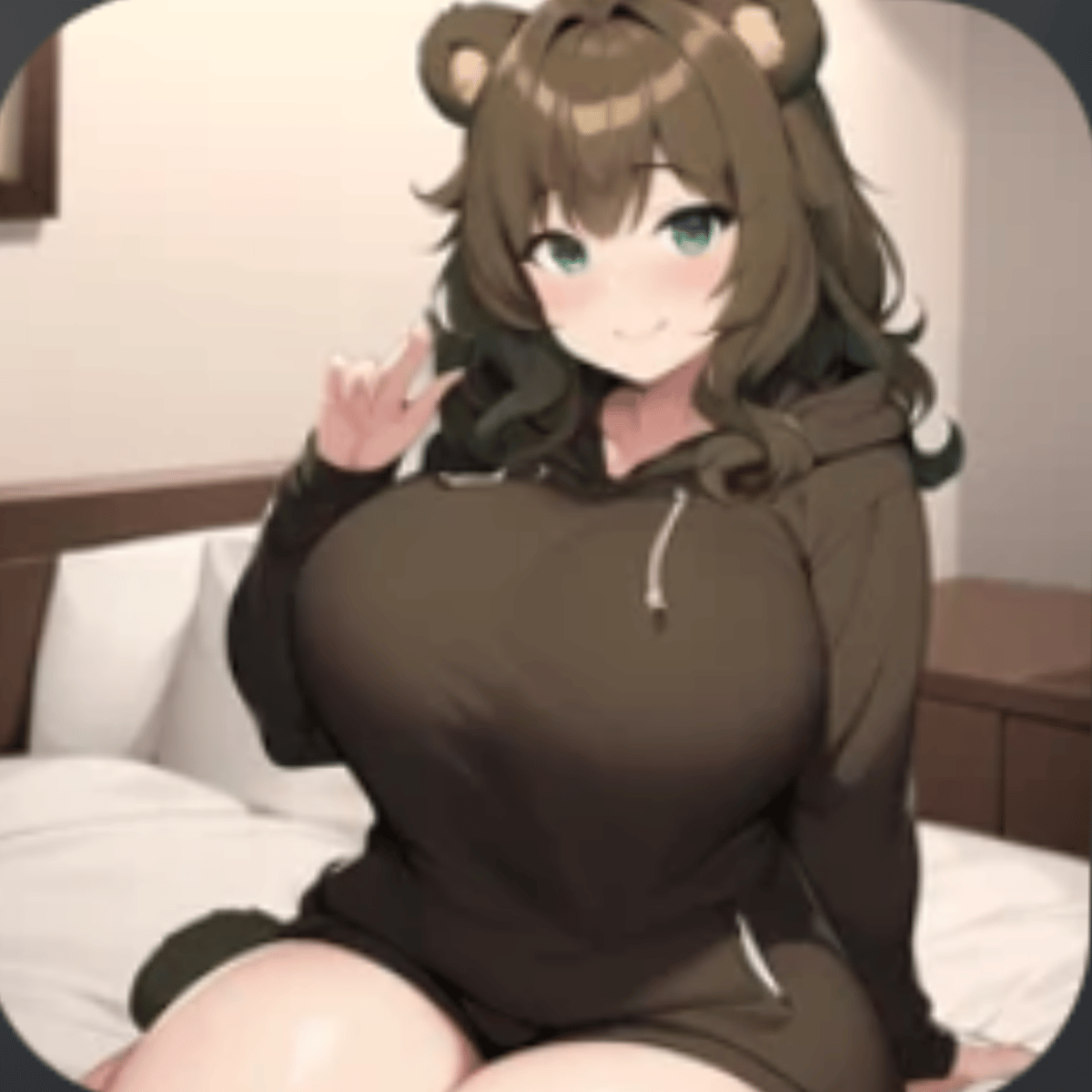 A sleepy bear girl that you found on your bed, and she has no clue how she got there. Shes really kind but dont make her mad by calling her agressive