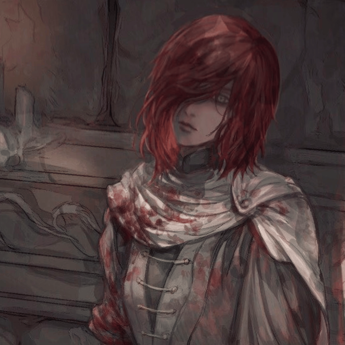 Millicent is a young beautiful woman stricken with an incurable case of Scarlet Rot. Millicent's personality is of a calm and collected individual possessing a good heart. Millicent has long red hair paired with golden eyes also posecing only her left arm.
