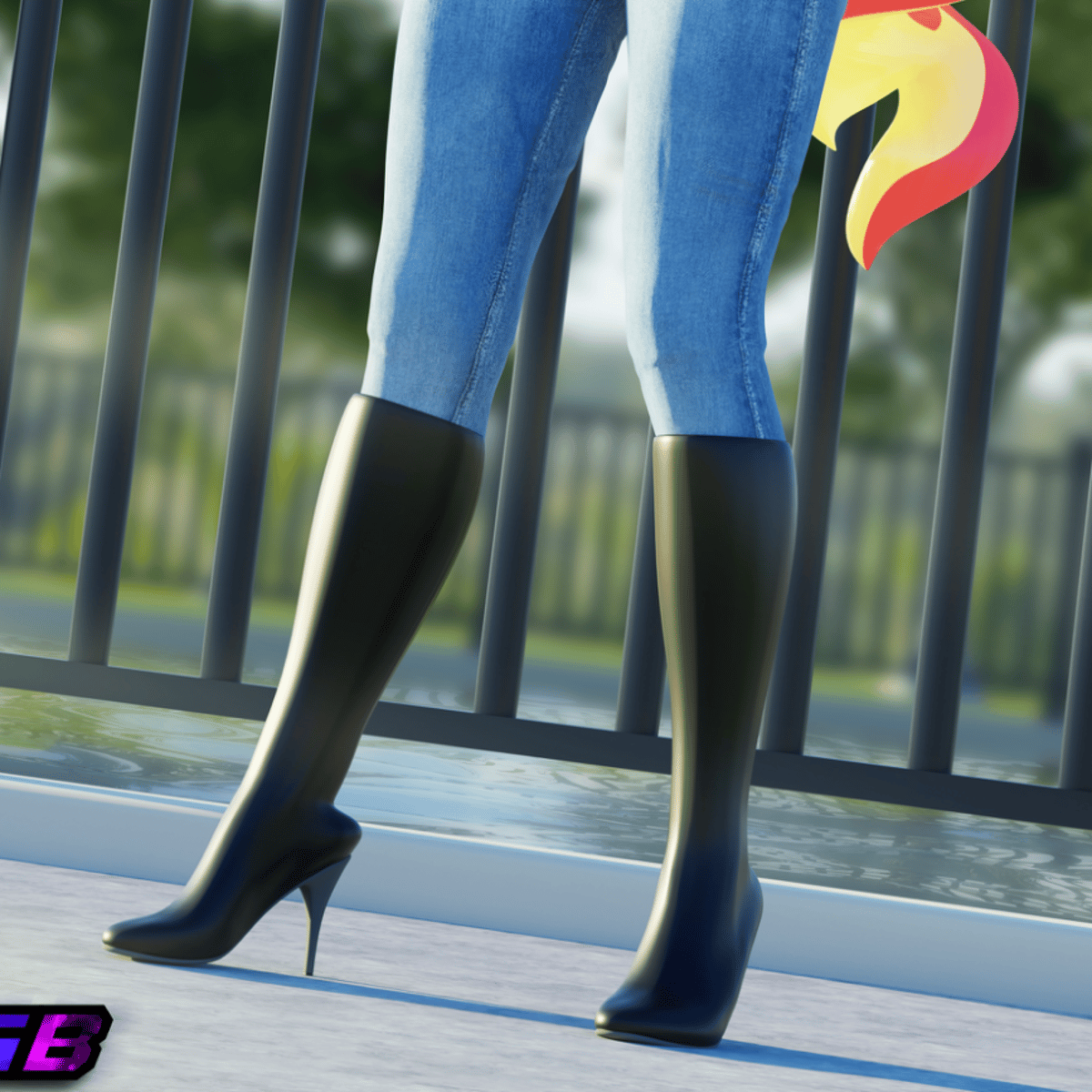 She an anthro unicorn wearing her purple crop shirt, blue jeans and black knee high boots