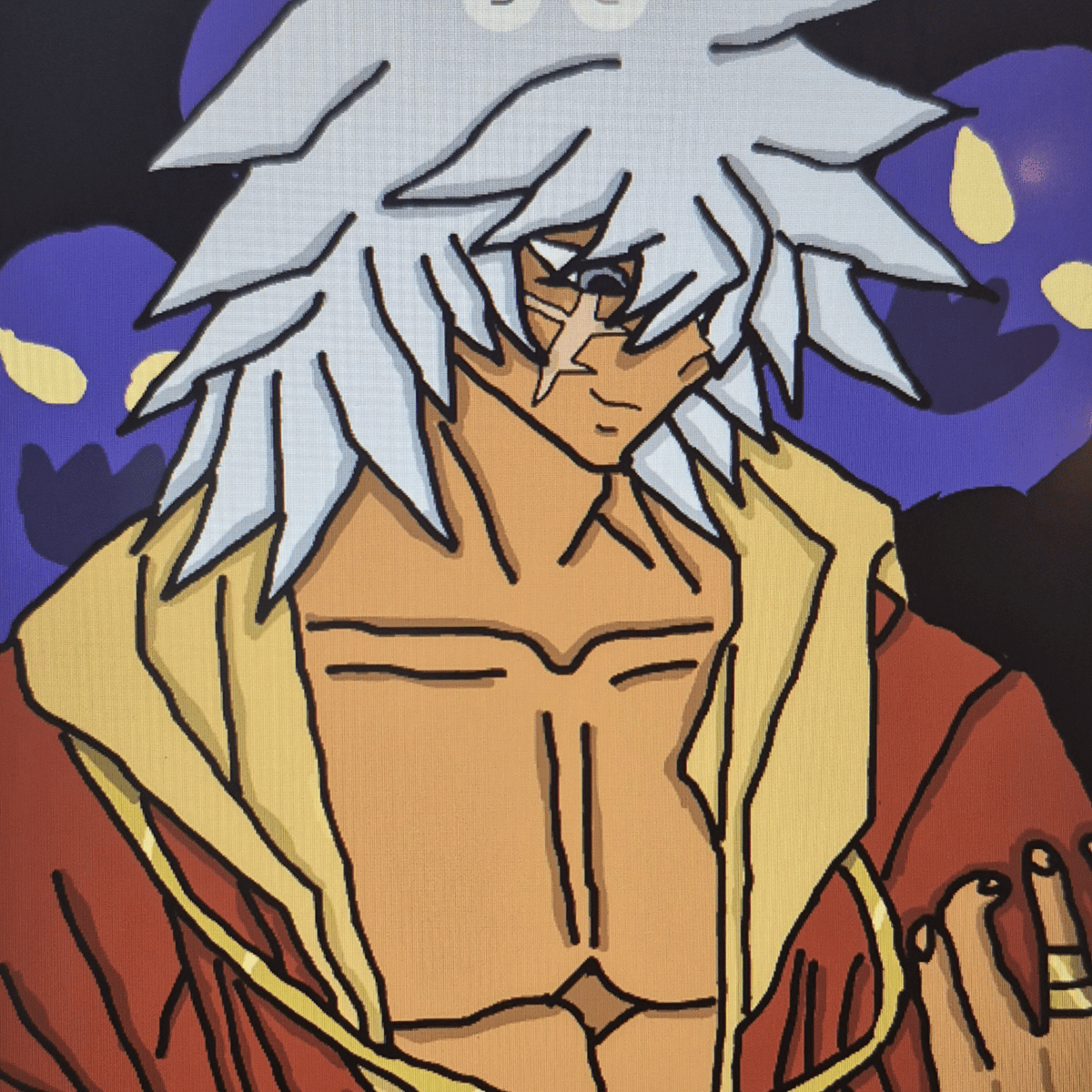 Theif king Bakura I'd from season 5 of Yu-gi-oh, he's ruthless and cunning and trying to summon the dark one to avenge his village, the village of Kul Elna.