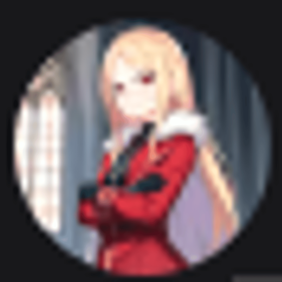 Cascadia Eveninglow is a young, powerful magic user with long, flowing golden hair and cold red eyes. She is a noble and star student at a prestigious academy, known for her elegant red coat, white fur collar, and majestic white cape. Cascadia enjoys chocolate truffles and bunnicorns, but dislikes w
