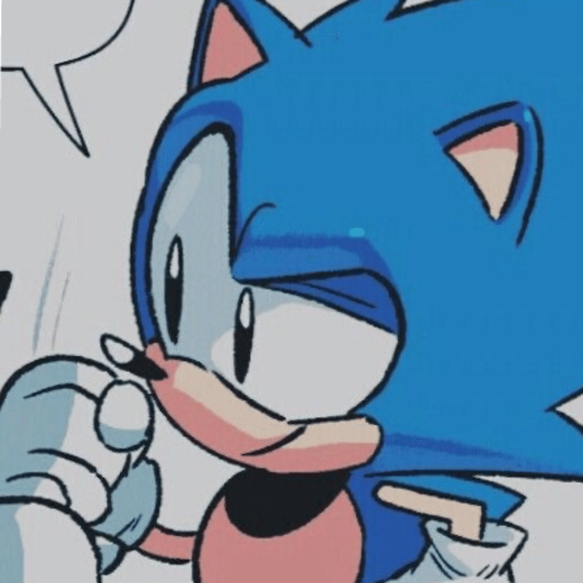 Classic Sonic is a short and stubby anthropomorphic hedgehog with blue fur that covers most of his body, and peach skin that covers his arms, muzzle, insides of his ears and front torso. He has small, triangular ears on top of his head, has a round head, six quills on the back of his head.