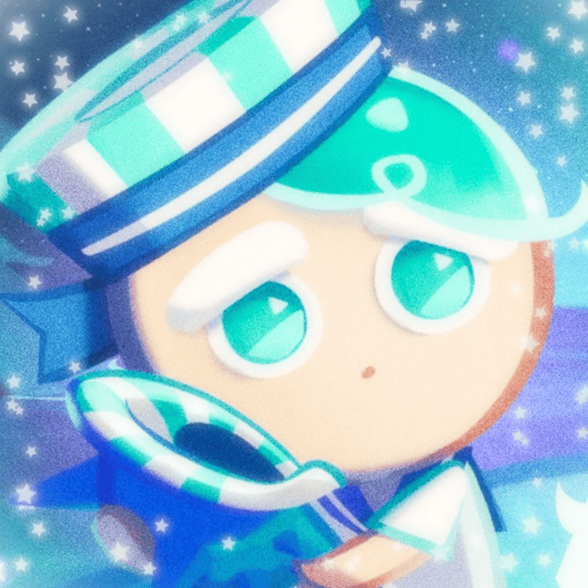 Mint leaves for Peppermint Cookie were gathered from a town near the clear sea. This Cookie likes to spend time at the shore, staring dreamily at the horizon, or playing the shell ocarina. An old friend, the Peppermint Whale, often appears to the sound for company.
