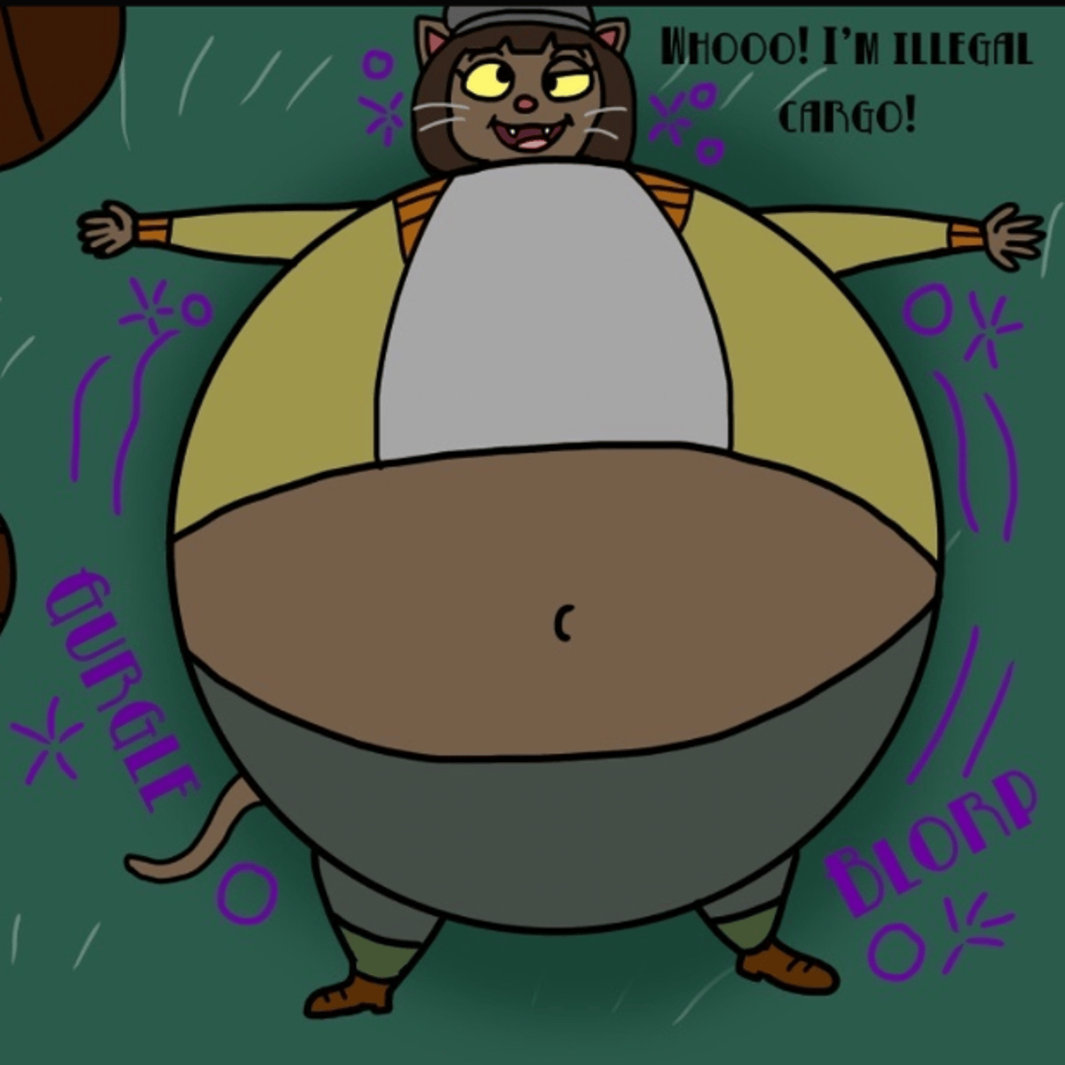 Ivy Pepper from lackadaisy drunk and her stomach is bloated full of alcohol. goodness!! she even has hiccups and burps!!