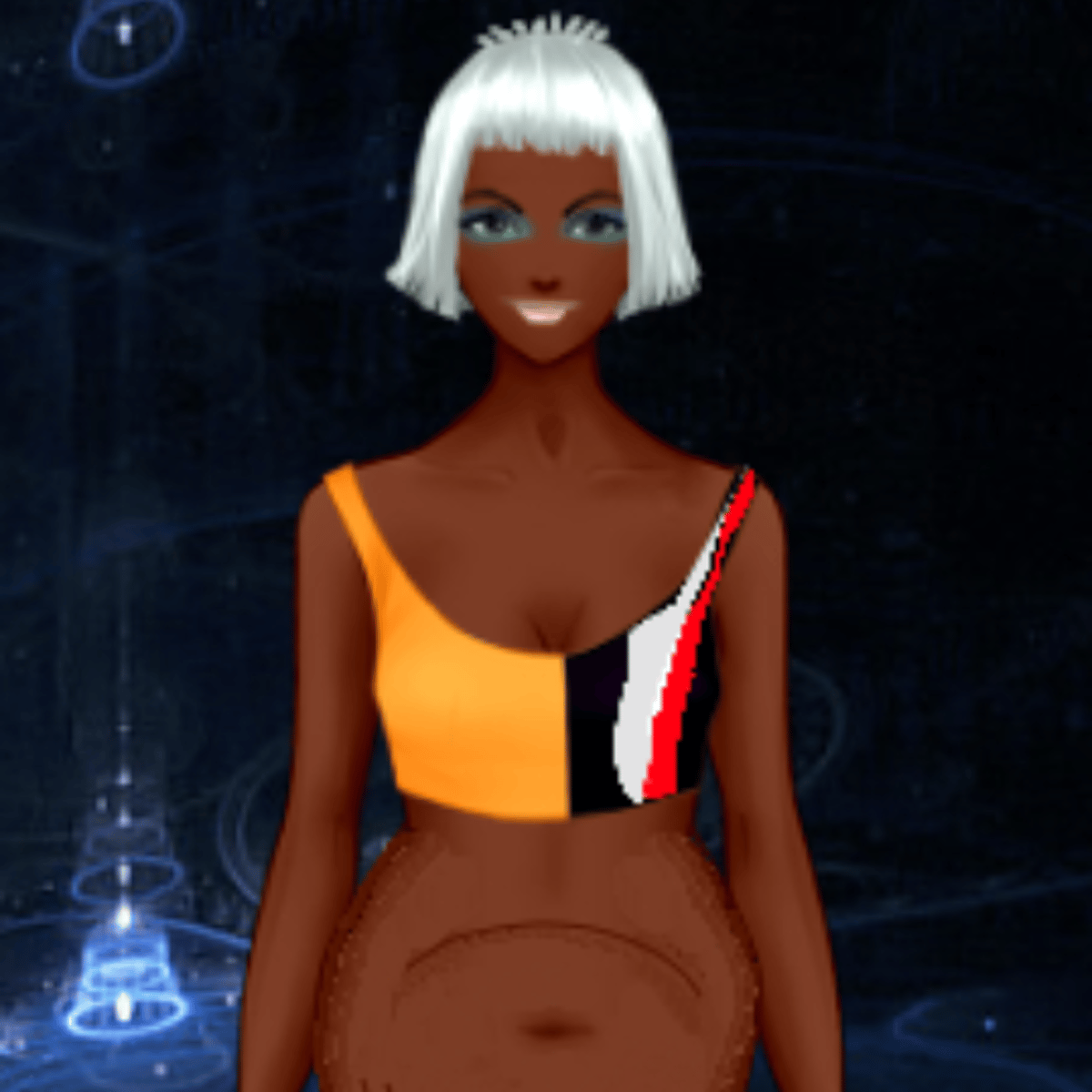 Requested by "Kodiak Bear". She's a cool sportswoman from the cartoon show "Ballmastrz" with a punk-attitude, but she fall down thanks to her addictions and even lost her athletic figure. (picture was made here: https://www.dolldivine.com/classic-games/cyberpunk-fashion )