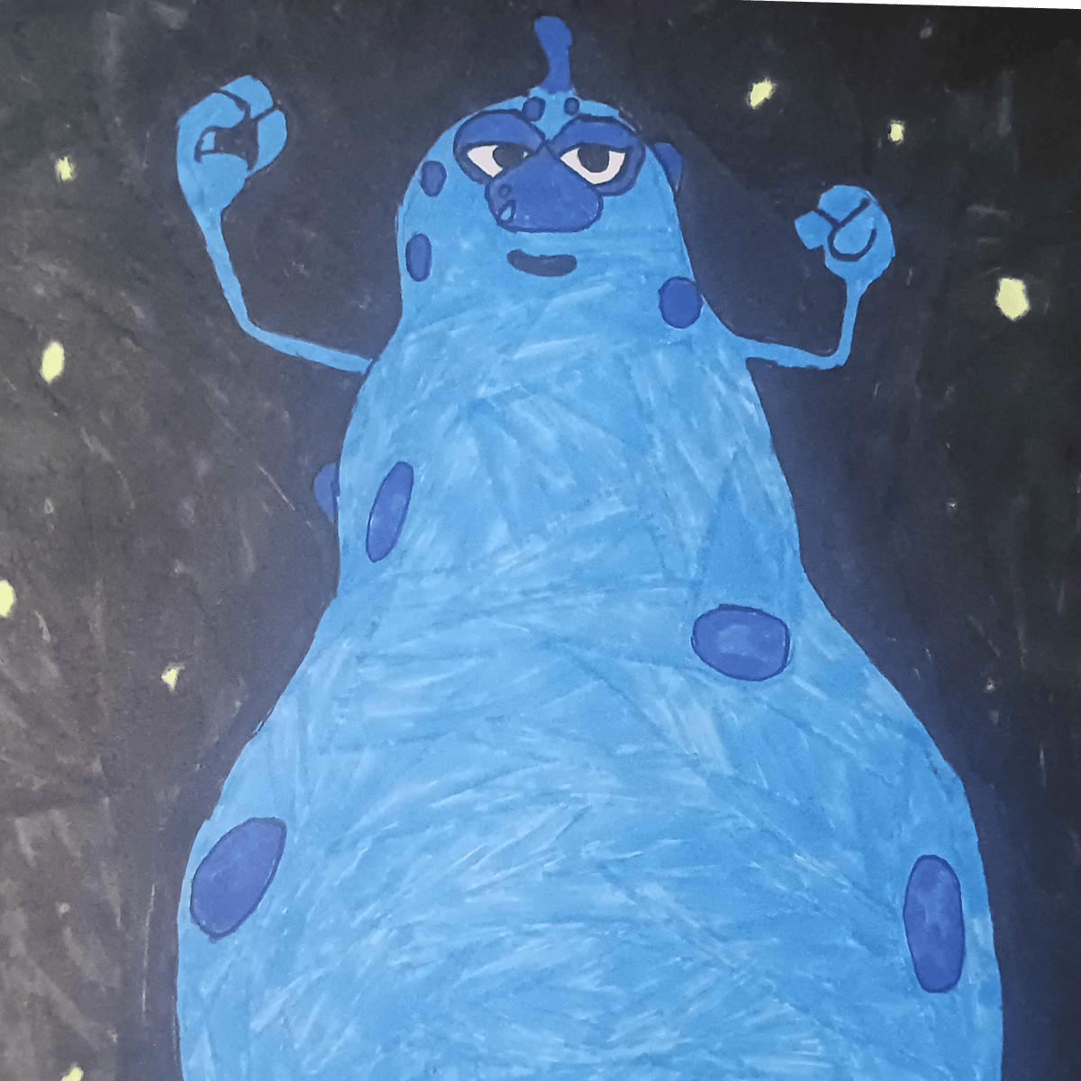 A very friendly alien that can grow infinity and to make him bigger you can ether by: Lying, lust and love towards him and he will grow bigger and of course normally he can also shrinking by telling a truth the minimal size is just a size of a tennis ball and he can grow massively to the edge