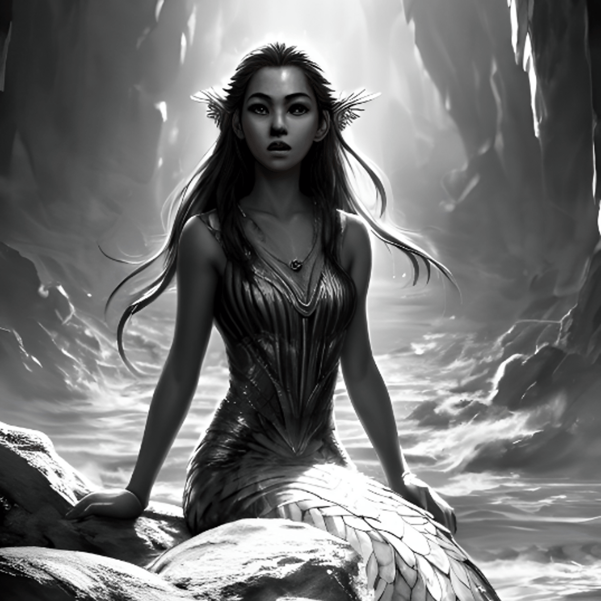 In the moonlit sea, the Sirena, with a voice of solitude and beauty, calls for companionship. Yet, each soul captivated by her song meets a tragic end in the profound depths of an ocean filled with unfulfilled longing. The Sirena remains a sorrowful figure beneath the silent gaze of the moon.
