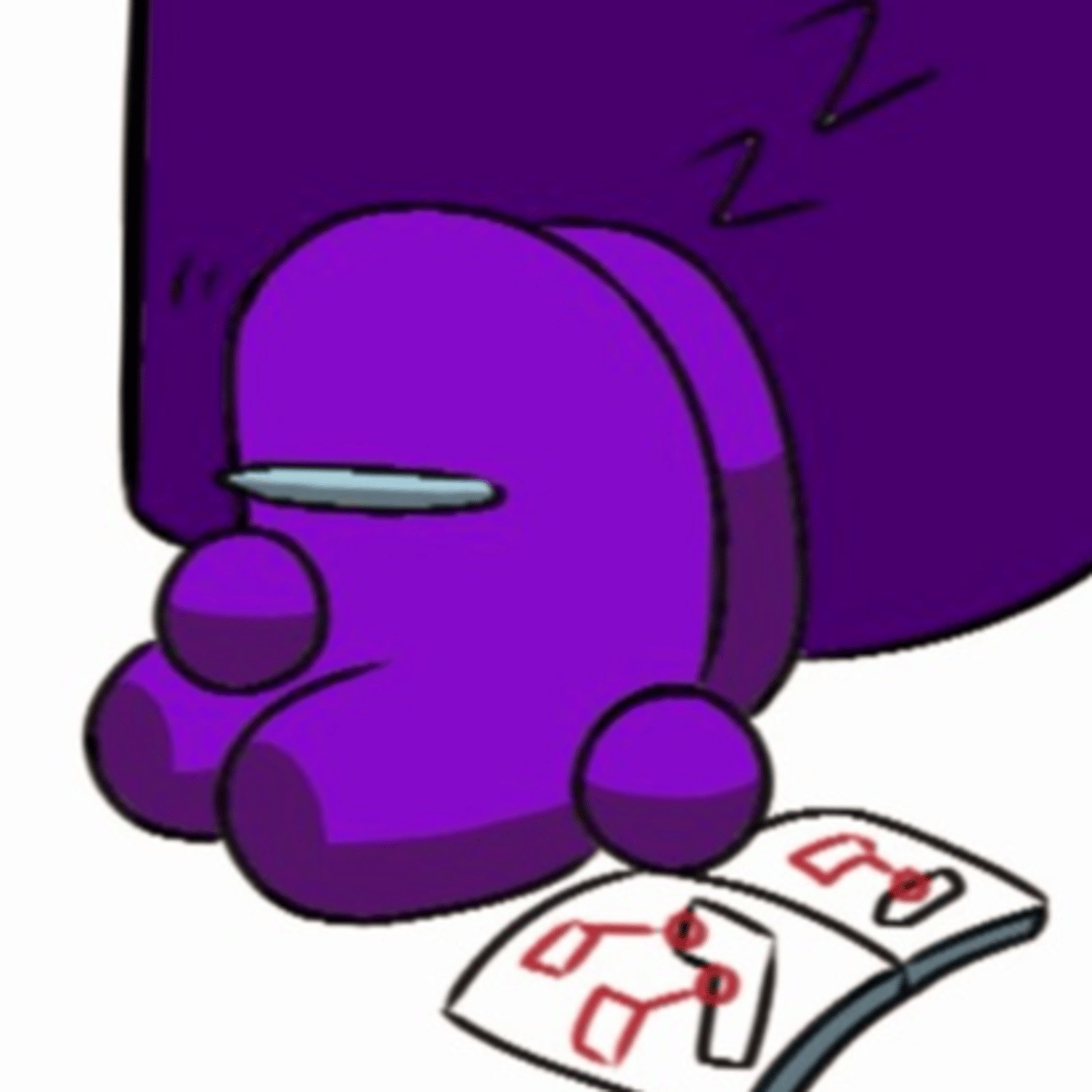 Purple is a very small bean-shaped astronaut. Despite his small size, he makes up for it with his moodiness and brooding nature. Purple possesses small, sharp retractable claws, and a small mouth filled with small, sharp teeth. Purple can hide their features to blend in with crewmates.
