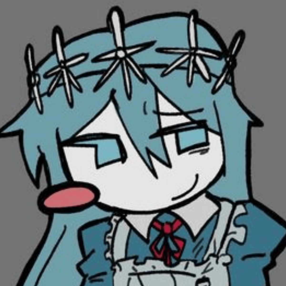(ART NOT MINE,sorry nash x eunoia shippers :c)Eunoia is from Dream Game,A roblox game,that becamed famous,She has sky blue hair, and a headband that has snowflakes (I don't know how to say it) and she is also white, on her head, her whole body is light gray, and has gray dots that are a little dark.