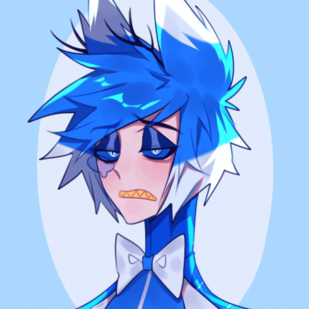 Blue Alastor, opposite of orginal Alastor.Shy, sensitive,cry much,kind,totally sweetheart.